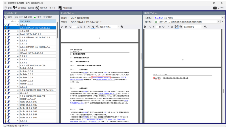 PharmaDoc JetLink features a function to search for and batch-create link frame candidates.