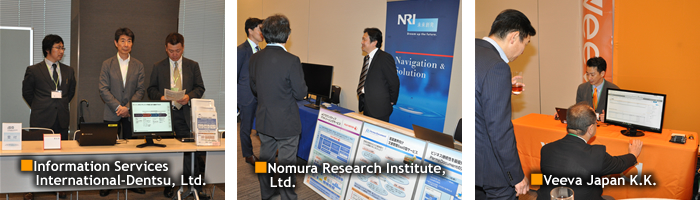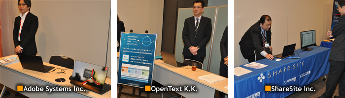 Adobe Systems Inc., OpenText K.K. (Documentum), ShareSite Inc. (crossnote), Information Services International-Dentsu, Ltd. (Wingspan), Nomura Research Institute, Ltd. (Perma Document), and Veeva Japan K.K. (Veeva Vault) all had their own booths set up for customer consultations.
