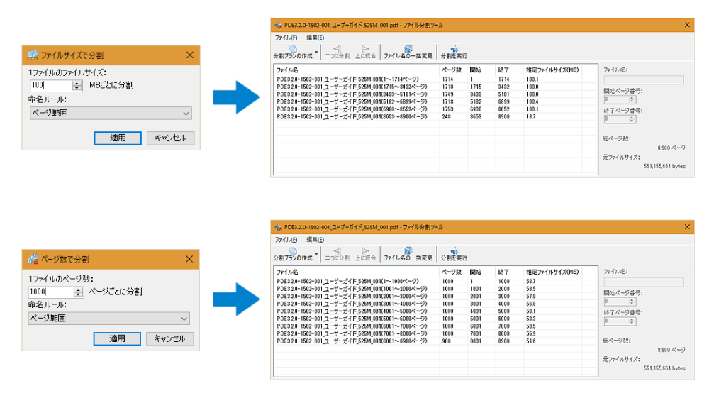 You can split a large PDF file into multiple parts while leaving bookmarks and links as inter-document links.