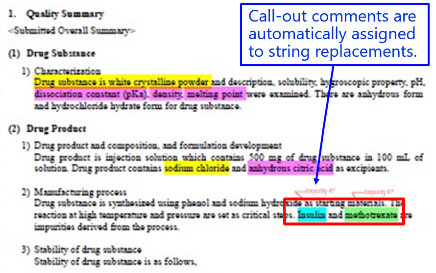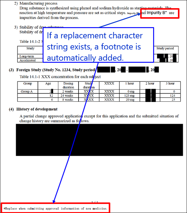 (Automatically add "*Substitute when providing new drug approval information" to footnotes on pages with substitution strings.)