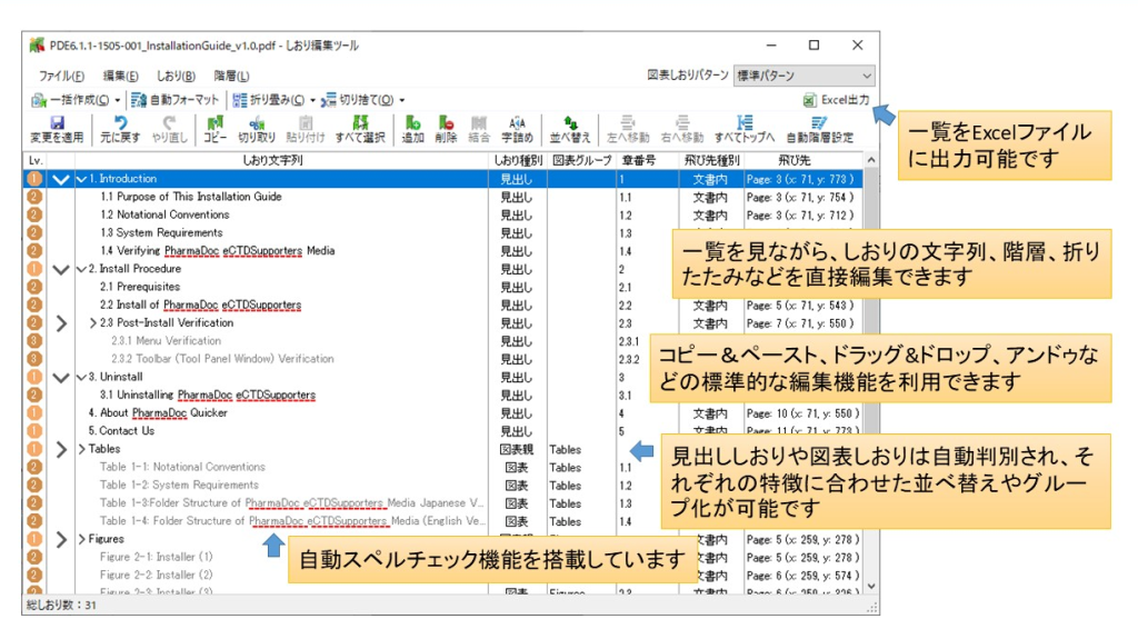Submission Ready化において作業量が特に膨大になりがちな、しおりおよびハイパーリンクに関するツールを充実させています。