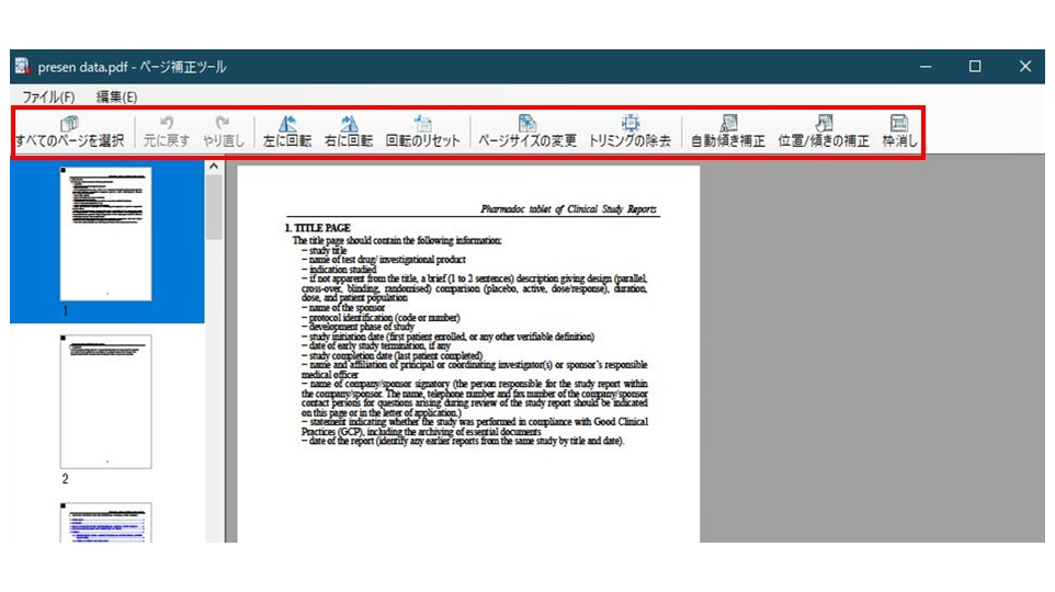 ページサイズの変更やページ回転、傾きの補正などの操作を、プレビューを見ながら直感的に行えます。