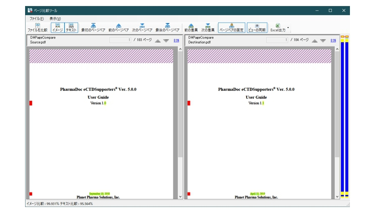 PDFファイルのページコンテンツを比較するツールを用いて、編集作業で生じたページコンテンツの欠落や文字化けを検出できます。