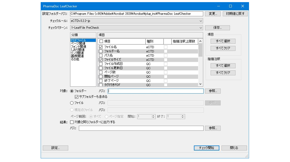 これにより、eCTD規格や社内ルールを把握していなくても、社内統一したリーフファイルの品質チェックが可能です。